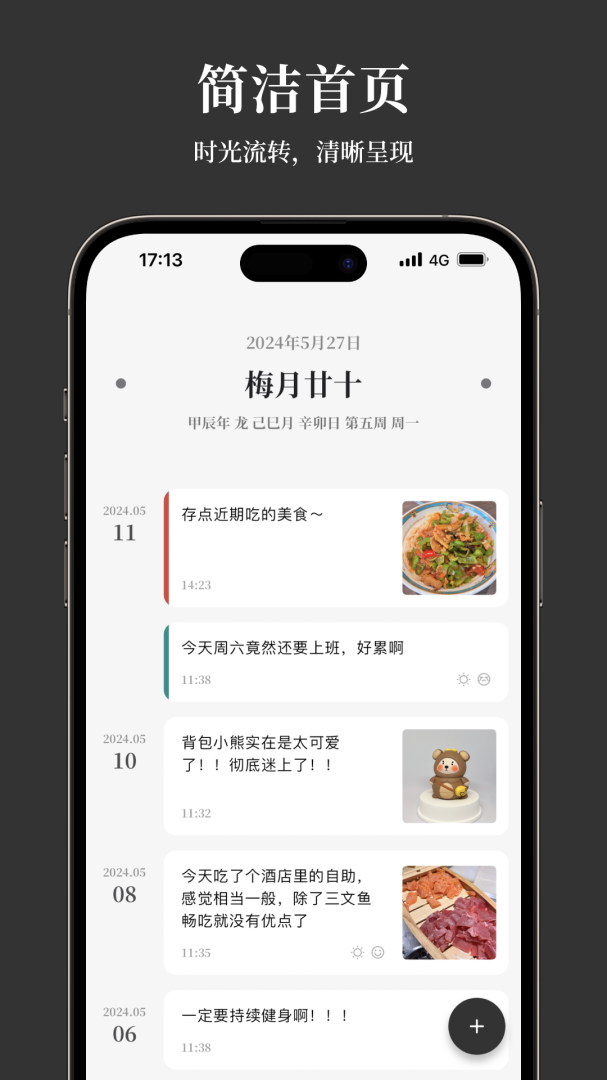 凡事日记是款简约好用的生活记录软件,可以用于事项记录、待办事项规划、习惯打卡等。它的记录界面采用了时间轴的设计,每天记录的事情都可以清晰地看到,一览无余。写日记是随心所欲的,没有任何限制,可以只是一句话,也可以是洋洋洒洒的几百字,随心记录