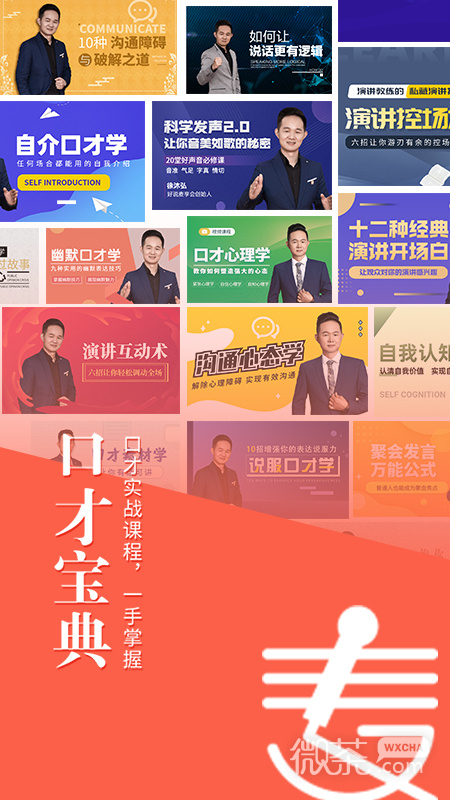 3、麦享会APP以华语实战口才精品课程为主导,内容涵盖演讲口才、自介口才、拒绝口才、谈判口才、科学发声等多个实用口才领域,邀请华语口才领域顶尖讲师、一线口才讲师坐镇,提供最精准、最前沿的口才知识内容