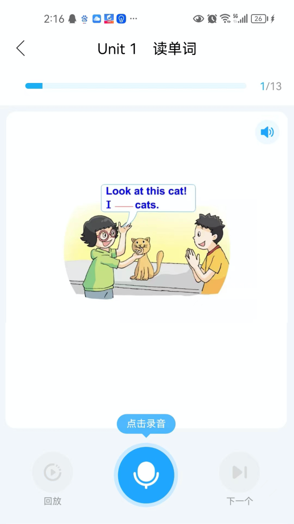 点击您需要学习的教材封面,即可进入学习页面。包含课本随身听、练习和错词库三个学习模块。
