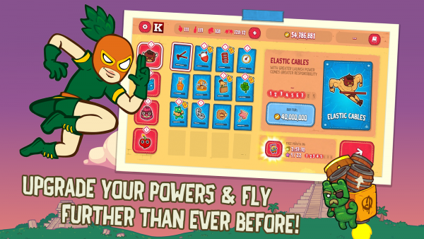 野牛复仇记-安卓版(Burrito Bison Revenge for Android) 野牛复仇记登陆android平台,延续经典作品轻松搞笑的风格,玩起来意想不到的上瘾。通过控制空中姿态、使用技能、升级等各种方式来实现“飞得更高、更远”的目标。 通过点击决定指针停留的位置,野牛会以相应的力道飞出去(中间的力道*)。玩家可以使用火箭来保持速度或者消灭警察。