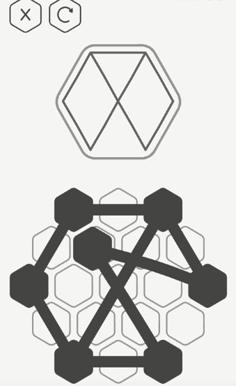游戏屏幕上方会出现一个特定的图形,玩家需要利用屏幕下方的六角形来勾画出相同的图形。
