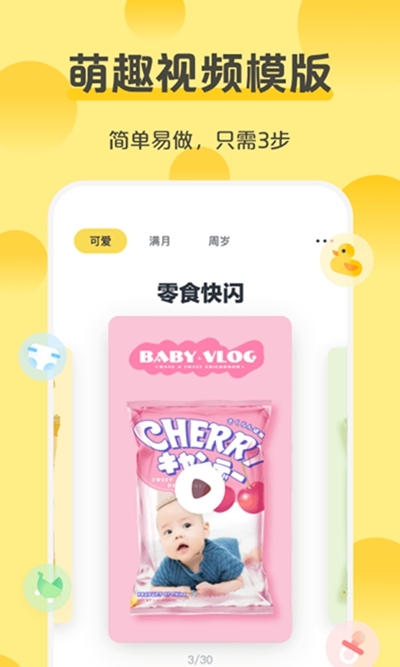 定期更新各种萌趣模版,适合宝宝的各种照片,将瞬间的画面串联成精美的视频短片。简单易做,只需3步:上传—编辑—导出