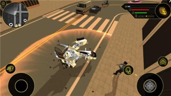 游戏里玩家将可以操控强大的机器人在城市里自由行动,机器人配备了多种强力武器供玩家使用,此外还能变形成汽车提高自身机动性从而快速抵达目的地。