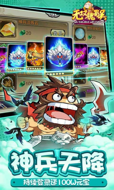 三国手游巨作定制版《三国大作战千连抽BT版狂玩版》携【最强福利】震撼登场!拥有最强的充值返利,超高的充值比例,活动幅度提升数倍!三国X卡牌千万粉推年度最受期待手游,玩家好评如潮。画风呆萌玩法魔性,最强三国名将独家养成,排兵布阵尽显华丽阵容,真人实时PK巅峰对决,红颜相伴一统江山,众多乐趣无法言语只能亲身体会!《三国大作战千连抽BT版狂玩版》全都“魏”你而来!一起缔造“蜀”于你的“吴”双三国世界吧~!