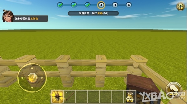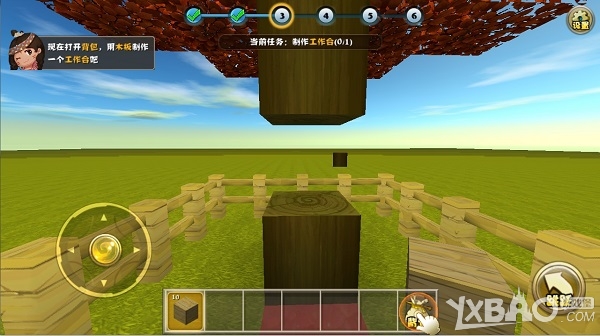 你当获得木头之后,即可点击【背包】→【制作】标签页合成工作台,工作台需要四块木板(任意树木皆可合成木板)