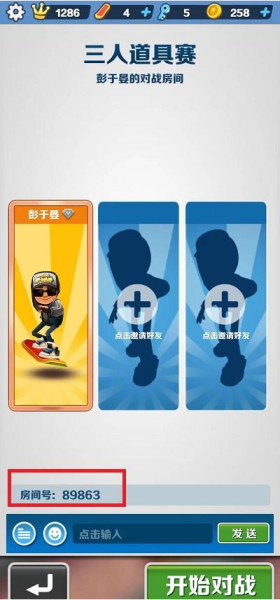 4、在创建房间成功之后,就可以看到房间下方会有一个【房间号】发送给另一个玩家;