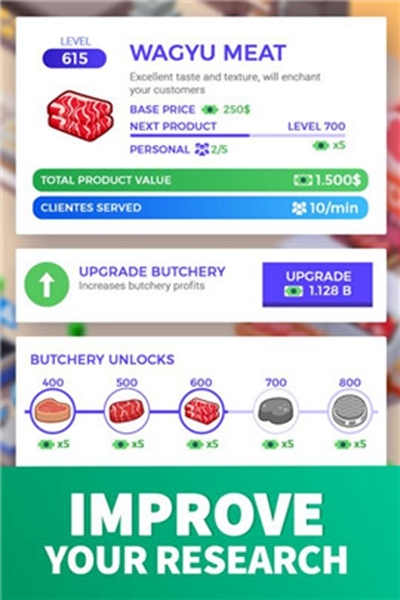 你可以和不同的部门一起经营自己的生意,比如药店、蔬菜水果店或面包店。做出重要的管理决定,建立你的帝国,把你的小市场变成世界上最大的超市之一!研究惊人的新功能,以提高您的产品质量,优惠,和部门在超市。让你的业务增长。从一个小市场开始,把它变成一个大型超市。建一个面包房,在蔬菜水果店卖水果和蔬菜,提供高质量的鱼和肉类产品。经营自己的香水店和电子商店。装满他们的购物车!成为最好的市场经理。雇佣卖家,并激励他们增加你的销售和利润。