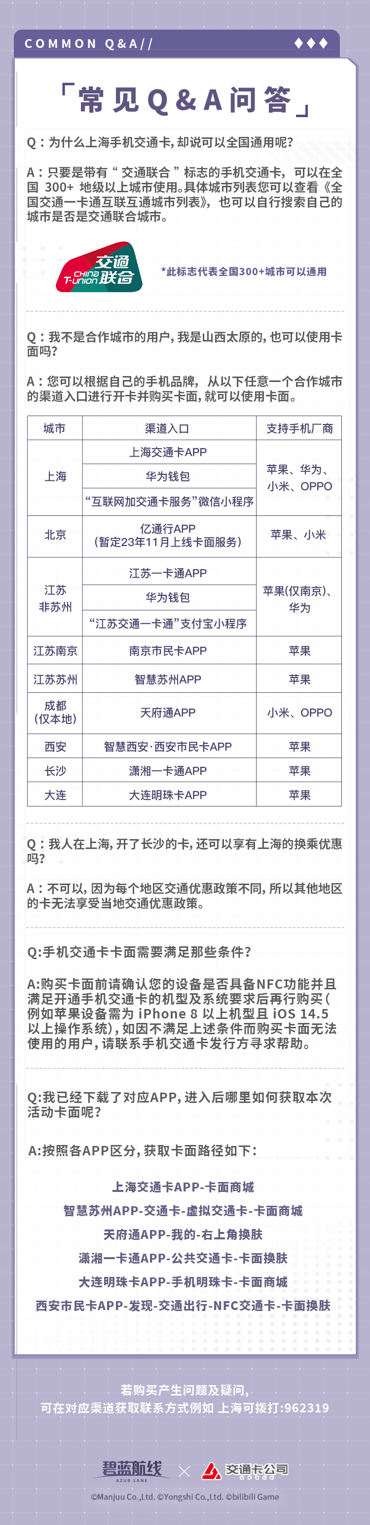10月26日,伴随着游戏风帆版本的更新,《碧蓝航线》x上海交通卡联动开启,碧蓝航线手机交通卡卡面于上海交通APP上线,感兴趣的指挥官可以前往APP卡面商城选购喜爱的交通卡卡面。