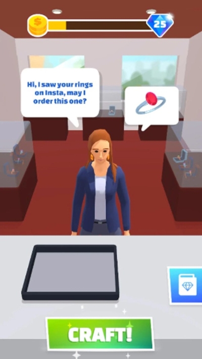 我开了间珠宝店是一款模拟发现原石进行切割最后变成美丽的珠宝的游戏,在这个游戏里面玩家成为了一个珠宝匠,为不同的顾客镶嵌不一样的戒指和项链。首先玩家需要先寻找原石然后以自己高超的技术,将原石巧妙的进行切割然后进行抛光打磨,最后浇铸到拥有的模具里面,设计出属于自己特色的美丽珠宝。