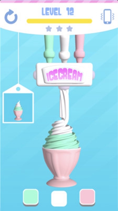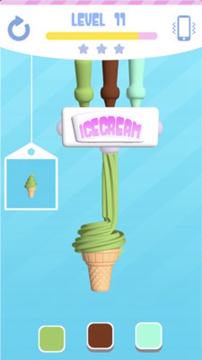 玩法上还是比较休闲的,画面设计也是很简洁化的,通过各种材料的搭配,做出令你和你的客人们满意的冰淇淋。