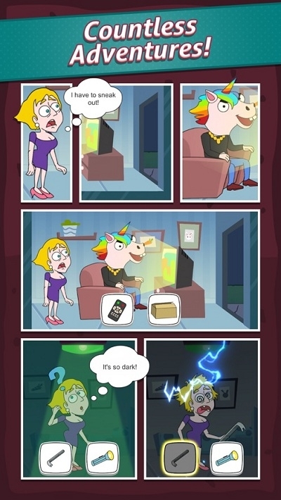 每一关都有多项选择题——选择正确的答案继续游戏。选错答案会给女孩带来很痛苦却很滑稽的后果!