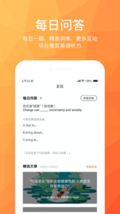《磨耳英语听力》是一款专业的手机听力学习软件。从听力入手,符合我们学习语言的自然习惯,辅助听写,轻松不累。复习模块专门设有“模式设置”,用户可以根据自己的水平选择时间间隔进行跟读,提高听力理解速度和口语流利度。有需要的话就来下载吧!