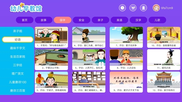 1.国学课堂:国学经典文化的韵律、美妙的意境和精炼的词句。培养孩子的语感、发展能力,提高文化素养有独到的作用。包含弟子规、三字经、千字文、百家姓、论语以及增广贤文等