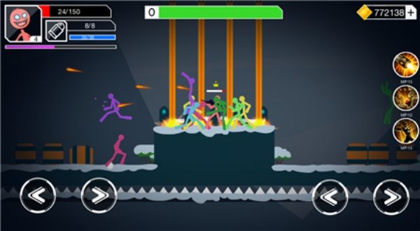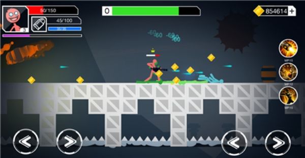 这款游戏采用简单的操作方式,左右控制火柴人的移动,点击攻击按钮进行射击。上手难度较容易,但是这并不影响游戏的激爽战斗体验,超大的地图依然可以进行爽快的战斗,多种技能随你搭配,刺激通关不要停!