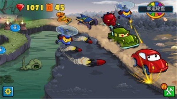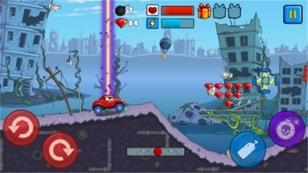 您可以收集升级道具和射击敌人,或者您也可以猛踩油门来超越他们!