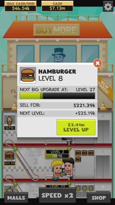 通过管理您的购物中心和店铺,以及您的空闲利润来成为商场大亨!扩展您的风险投资,并通过培训您的收银员和升级您的库存来助推您店铺的发展!解锁新的产品和您客户的全部潜能。建造您的帝国!是时候去买更多东西了!