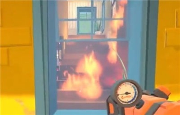 2、拿着喷水枪就可以进行任务,房间周围都充斥着大火,为了拯救一切;