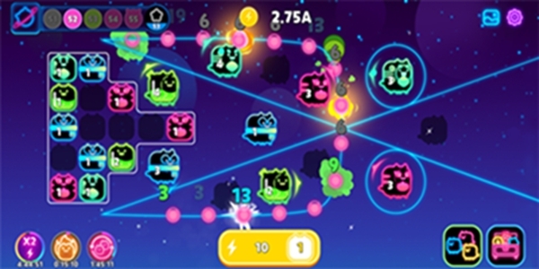 3、结合猫英雄的各项战斗属性,创造出一个强大的防御甲板,阻击各种敌人,以此来保护行星。