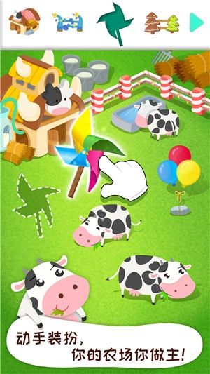 【照料小动物】—为奶牛多多驱蝇,给小羊苏西洗澡,给母鸡妈妈听音乐,还有可爱的三只小猪小猴子小兔兔汪汪队巴塔木汤姆猫,小动物们超喜欢有爱心的你!