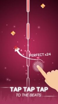 1、感受音乐的节奏点,轻击屏幕操作光点的移动轨迹。踩准节奏点, 努力获得更多的分数和钻石吧!