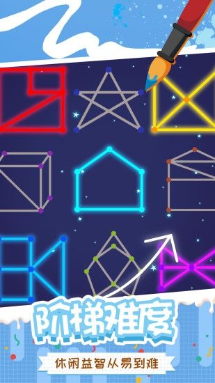 《快乐一笔画》是一款令人上瘾的一笔画智力游戏。这款游戏拥有着色彩绚丽的线条,轻松的音乐,清新的界面。这是一个有趣的免费益智游戏!