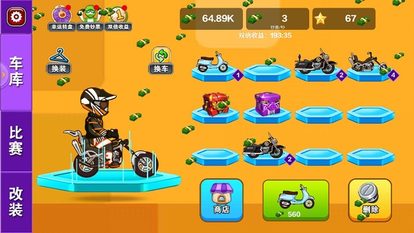 2、去零配件商店购买上等的零件,对我们的摩托车进行全面改装升级,提升它的性能;