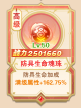 防具生命魂珠给予的是百分比的加成,自身生命值属性越高,基础的数值就越恐怖,基本上可以使玩家的血量增加一半以上。在与敌人对拼时,其他属性不相上下,但血量多的一方胜率更高哦。