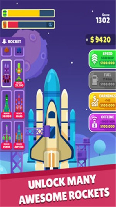 趣味的放置游戏,玩家将经营自己的公司,不断的解锁新的火箭,前往太空,完成各种任务,赚取大量的金钱,喜欢的朋友可以下载试试。