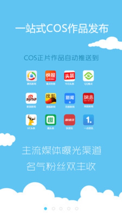Cosplay作品一站式发布平台,符合正片要求的cosplay作品将同步推荐到以下互联网平台:腾讯新闻 天天快报 QQ看点 今日头条 新浪新闻 网易新闻 搜狐新闻 百度新闻 一点资讯 趣头条 UC浏览器等。