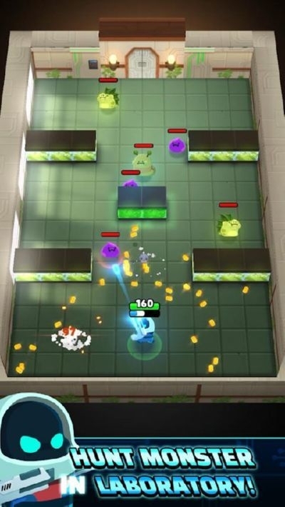 《实验室破坏者》是一款科幻赛博朋克风格的射击动作冒险类的手游。玩家在游戏中将化身一名勇敢的白衣战士,在危机四伏的实验室中与不断来犯的敌人展开激烈的对战。为了能破坏邪恶科学家的罪恶实验,玩家需要对他的实验室进行破坏。游戏采用俯视角3D画面,让玩家可以清晰洞察整个战场。