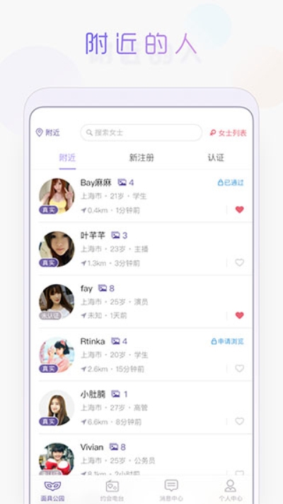 《面具公园破解版》是一款真实可靠的交友软件。经过实名认证,确保了信息的真实可靠,帮你找到志同道合的小伙伴,在这里可以快速找到真实可靠的男神女神进行各种类型的约会,如看电影、唱歌、运动等。快来下载体验吧!
