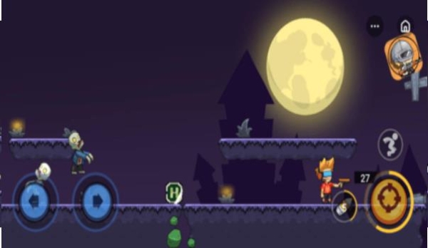 1、操作的界面是一个很平常的横屏,并且一般闯关的时间都是在黑夜,有一轮大大的月亮挂在天上。