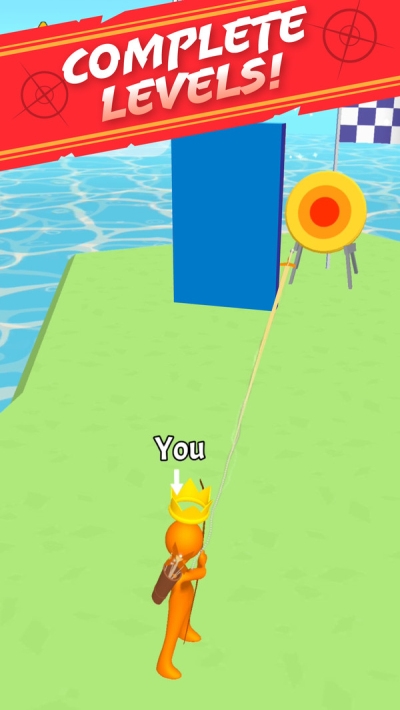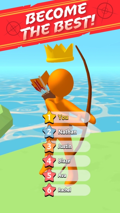 王牌小射手游戏是一款反复的练习射箭成为王牌的游戏,有很多个小人来和玩家进行射箭比赛,前方的靶子上面有很多的环,玩家要操控手里的箭不断的射出,每个人有10之箭,最后看谁射中箭离中心的位置最近,射出的十次里面会去掉最大和最小值,然后的平均得分就是最后的成绩。