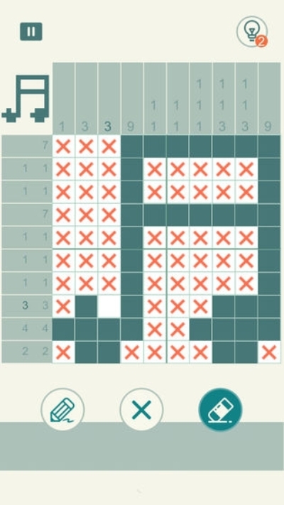 数图谜题包含一个空白的表格,以及在表格左侧和上方都有一个或多个数字,这些数字就是解题的线索。要想解开数图谜题,要做的就是解读这些线索数,并把与之对应的空格涂黑、线索数会提示你要在对应的行或者列涂黑多少个空格。赶快到游戏中体验吧!