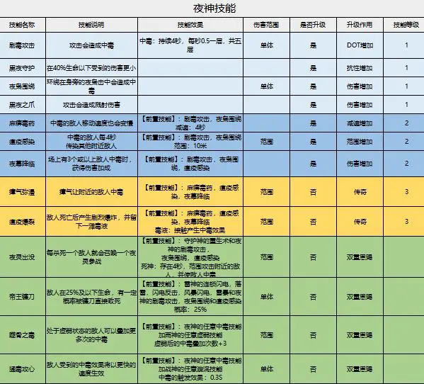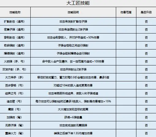 首先是一如既往的是【大工匠】与【风神】这两个特殊的神明,一个章节关卡只会随机出现两次并且给予勇士帮助让武器形成质变的【大工匠】所有技能与配对武器的专属技能如下表: