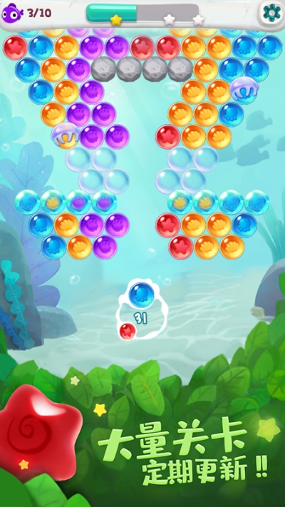 3、消灭关卡内的所有泡泡,就能通关进入下一关的挑战游戏。