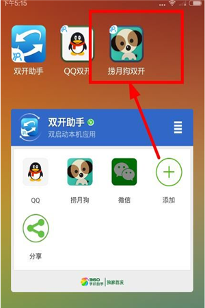 4、最后我们返回到双开助手界面就会看到添加成功的捞月狗。