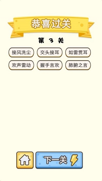 在《成语升官》中玩家会从一个乞丐什么都没有,慢慢做到大官,当然着一切的前提就是通过成语答题接龙的方式赢得机会,顺利去解锁出海量的关卡,给自己创造机会,深入性探索不同目标,随机性出现不同成语,充分去证明自己知识储存能力跟文化知识。