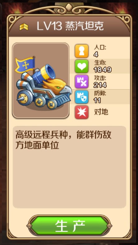 4、由说明得知,直升机属于空军单位,其攻击能覆盖空中及地面目标。那么坦克呢?