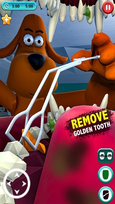 2、共有四种不同的动物,它们将会是你本次的治疗对象,首先需要清洁口腔,把脏东西拿出来;