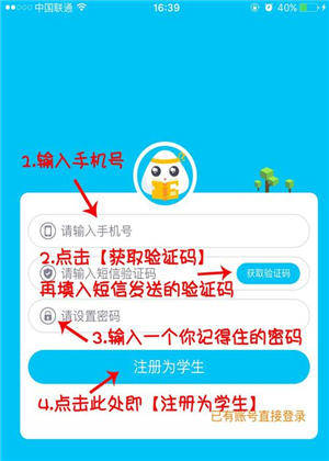 2、点击【注册为学生】后会出现图示页面,在此页面输入学生所在学校的全名。