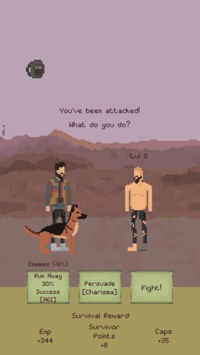 像素风格的末日生存游戏。在游戏中,玩家会作为一个流浪汉进行生存,你在地图之中需要进行生存,你需要沿途收集各种有用的资源,以免自己在路途中就被饿死!