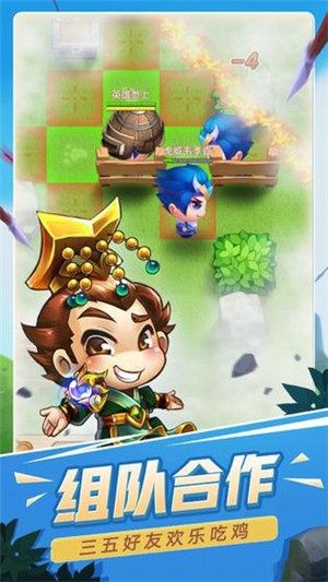 1、所有参与的英雄聚集挑战吃鸡玩法,Q版角色形象,多样化技能自由组合;