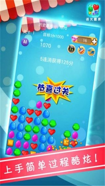 2、获得各种不同的糖果道具奖励,一次性消除更多的糖果,能够赢得更多的礼品。