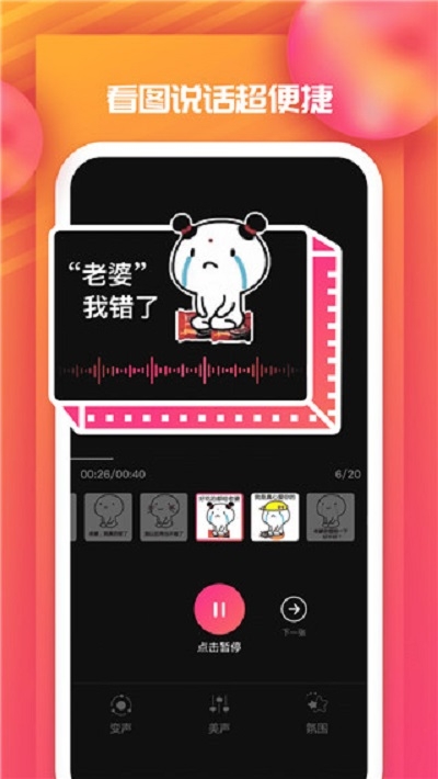 《全民戏精》是一款非常具有趣味性的一款配音软件,无论是在生活中还是游戏中,一个很带有磁性的声音都能立马吸引人的注意力,用这款软件即可帮助你变声,无论是萝莉音,御姐音,大叔音,小鲜肉音都能任你挑选,无论是搞怪还是录素材都特别实用,快来下载体验吧。