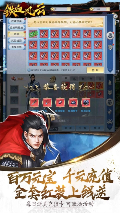 登录、签到、抽奖、擒王、充值超多活动丰厚奖励,助你早日称霸天下;