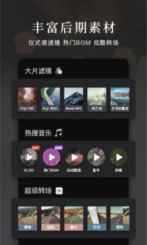内置海量素材库,包括音乐、特效、滤镜等多种选择,帮助用户打造个性化、精彩的视频作品。