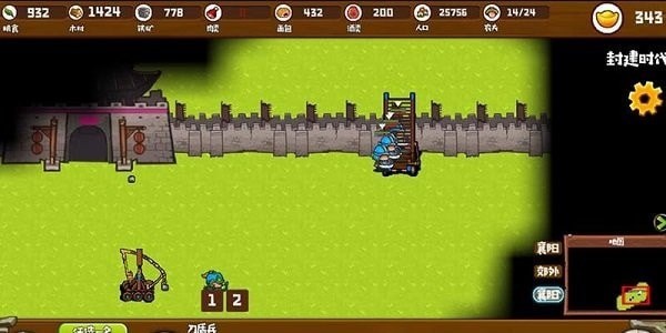 2、自由的探索这个三国时代,建造农场,牌楼,兵器,招募士兵并且带领士兵攻打城池,占领土地;