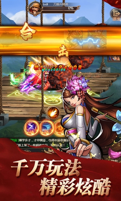 1、街机之三国战记多种其他的武将可收集,玩家们按照自己的努力就能解锁使用,并且还可给武将升级来提升战斗力;