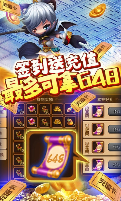 创角福利直接起飞:赠送神将张飞,名将招募令x100,进阶丹x3000,银币x1000000